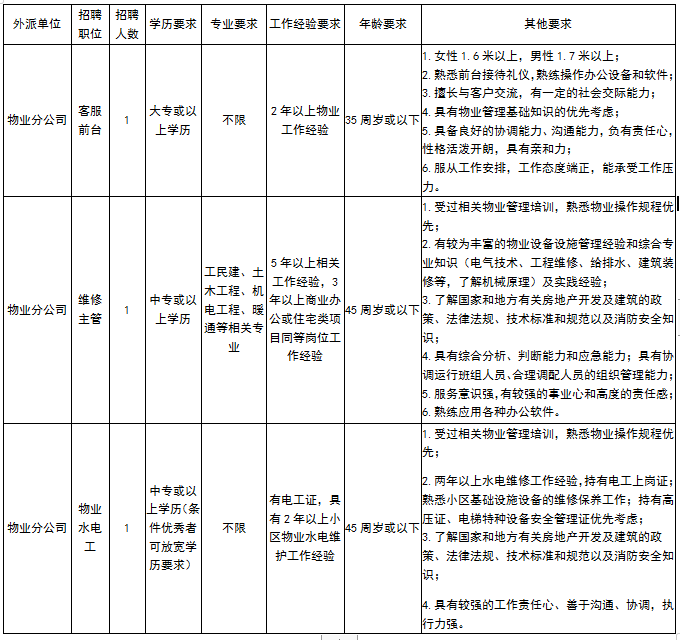 清遠(yuǎn)市弘力勞務(wù)有限公司以“專注人才服務(wù),專業(yè)服務(wù)人才”為企業(yè)宗旨,力求為企業(yè)及求職者提供專業(yè)、高效的人才服務(wù)平臺(tái)。現(xiàn)因公司業(yè)務(wù)發(fā)展需要,按照公開、平等、競爭、擇優(yōu)的原則誠聘客服前臺(tái)、維修主管和物業(yè)水電工各一名外派到清遠(yuǎn)市德晟公共資源管理有限公司物業(yè)管理服務(wù)分公司。