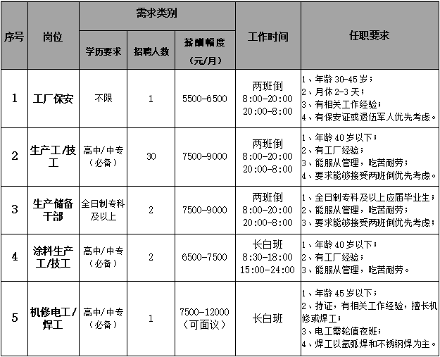 招聘崗位: