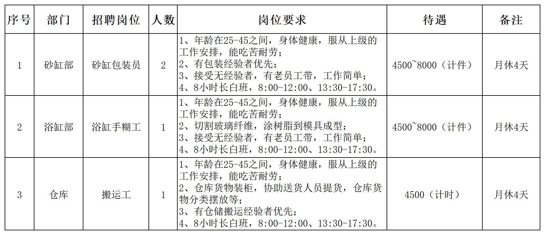 員工福利:交通方便,包吃午晚兩餐,包住,有熱水器,空調(diào),購買社保、法定節(jié)假日放假有禮物。